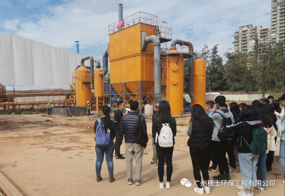 華南農(nóng)業(yè)大學(xué)師生們參觀了各個(gè)修復(fù)功能區(qū)域和現(xiàn)場(chǎng)修復(fù)設(shè)備,黃經(jīng)理一一為大家介紹了各個(gè)修復(fù)設(shè)備的主要功能(包括篩分設(shè)備、一體化污水處理設(shè)備、廢氣處理設(shè)備等),讓同學(xué)們親身感受到各修復(fù)設(shè)備的使用。另外,黃經(jīng)理也向各位同學(xué)講解了修復(fù)工程最重要的注意事項(xiàng)之一---二次污染防治,黃經(jīng)理在現(xiàn)場(chǎng)詳細(xì)地介紹了如何做好施工過程中二次污染防治措施。讓同學(xué)們的書本知識(shí)與實(shí)際現(xiàn)場(chǎng)相結(jié)合,得到更加充分的了解。