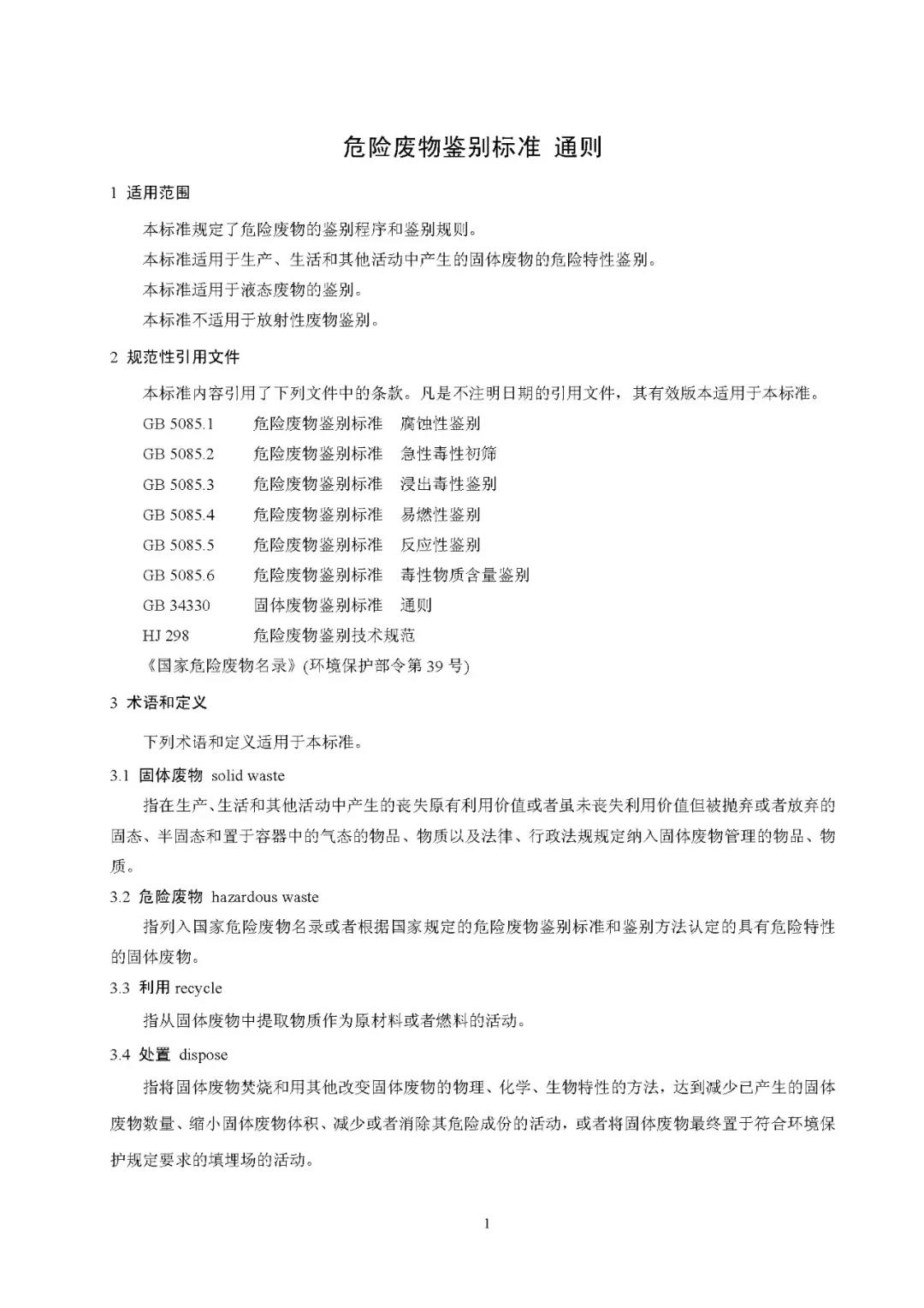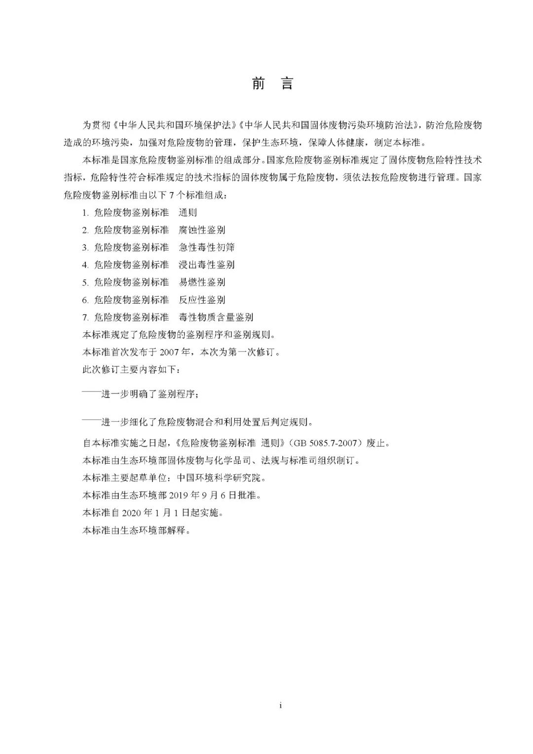 關(guān)于發(fā)布《危險廢物鑒別標(biāo)準(zhǔn) 通則》(GB 5085.7-2019)的公告